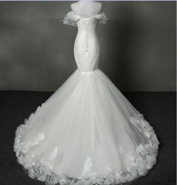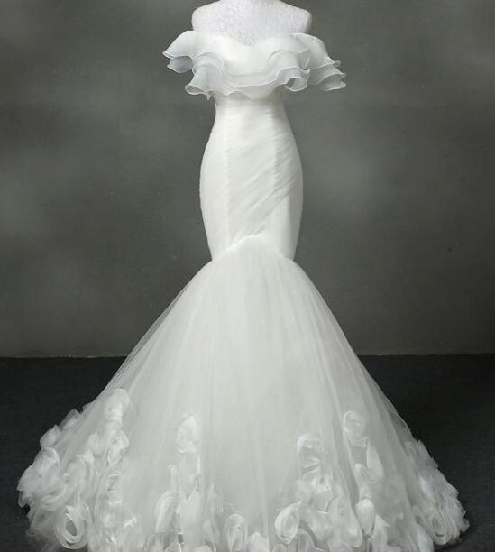 Vintage Off Shoulder Wedding Dresses Mermaid Hand Made Flowers Draped Layers Bridal Gowns Plus Size Country Wedding Gowns Custom Made