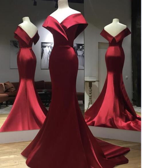 Off The Shoulder Mermaid Prom Evening Dresses Burgundy Satin Backless African Celebrity Gowns Sweep Train