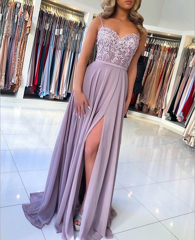 A Line Sweetheart Floor Length Chiffon Prom Dresses Lace Top Cheap Long Evening Party Robes de soirée Sleevelss