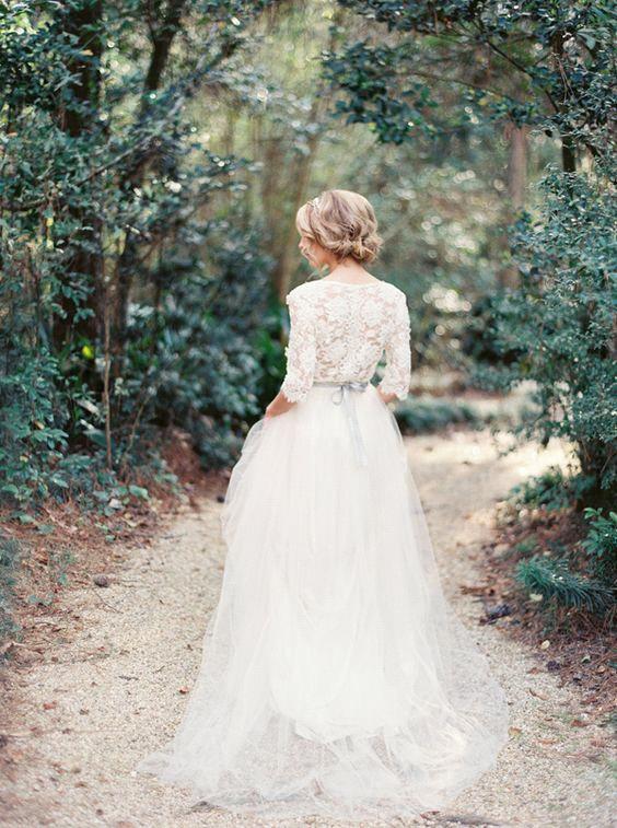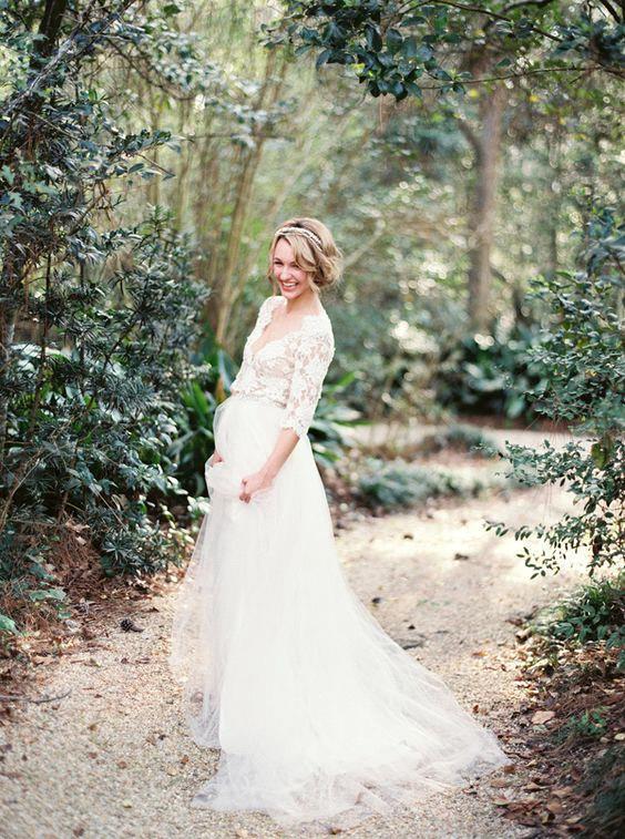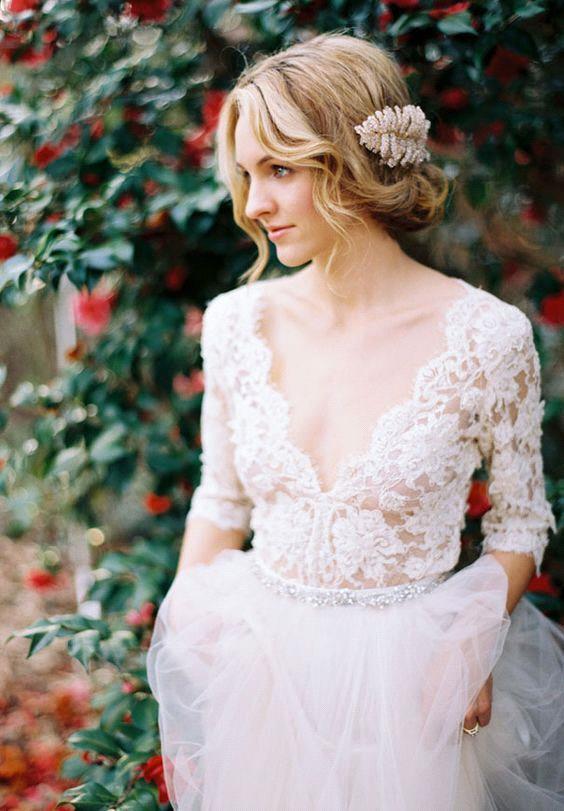 Robe De Mariee White Lace Wedding Dresses V Neck Half Sleeves Bride Dress Floor Length Beach Wedding Gowns Vestido Noiva