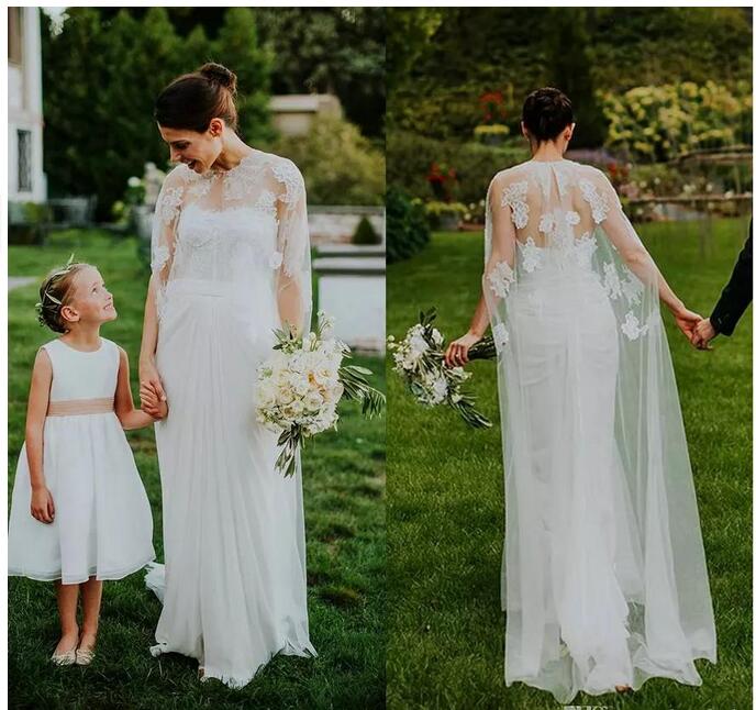 Bohemian Vintage New Two Pieces Wedding Dresses with Wrap Sheer Lace Cape Chiffon Wedding Gowns Country Style Beach Garden Bridal Dresses
