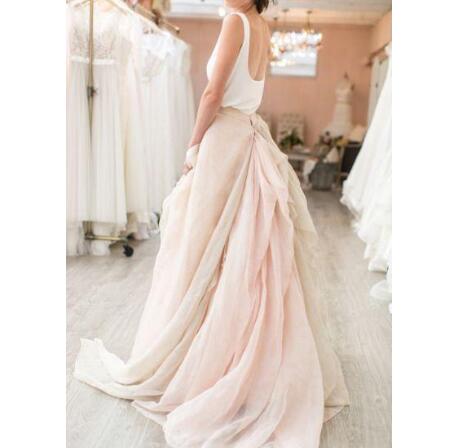 White and Blush Wedding Dresses Bohemian Scoop Ruffles Chiffon 2019 Simple New Beach Bridal Gowns Romantic Custom Made Floor length