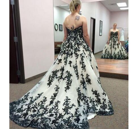 Vintage Gothic Black and White Wedding Dresses Plus Size Strapless Sweep Train Corset Country Western Cowgirl Wedding Gown