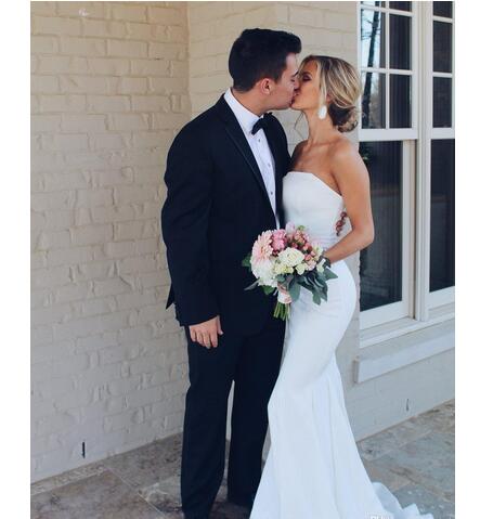 Alluring Satin Strapless Neckline Mermaid Wedding Dresses Sweep Train Zipper Back Bridal Gowns vestidos de novia