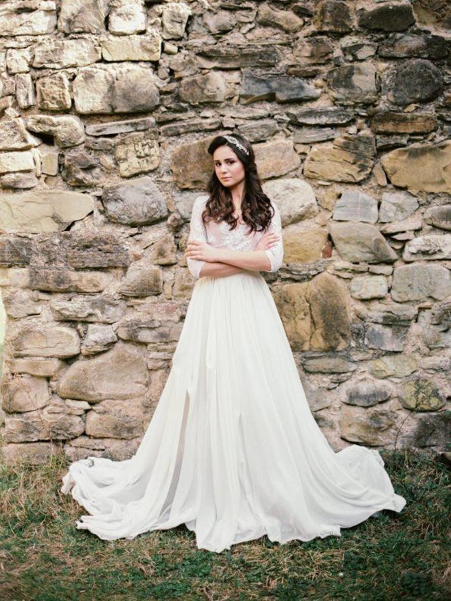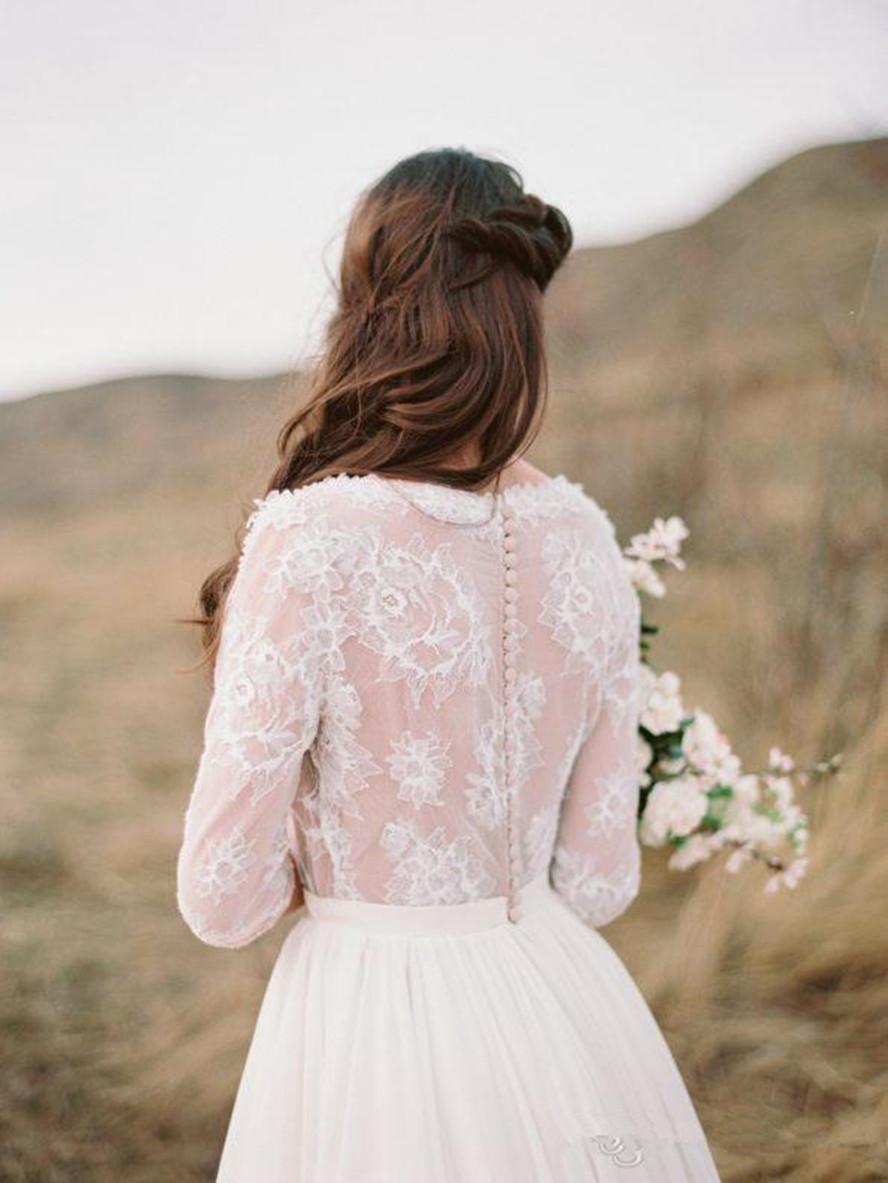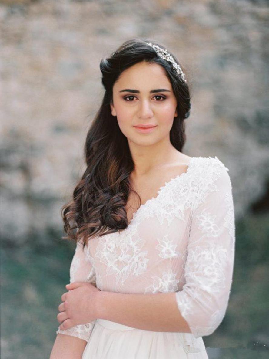 New West Country Beach Wedding Dresses A Line V Neck 3/4 Long Sleeve Boho Wedding Dress Custom Made Elegant Vestidos De Novia
