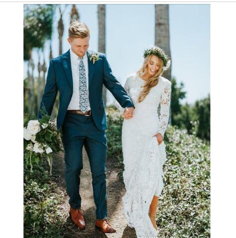 Jewel Neck Vintage Full Lace Mermaid Wedding Dresses Long Sleeve Bohemian Summer Holiday Countryside Beach Wedding Gown
