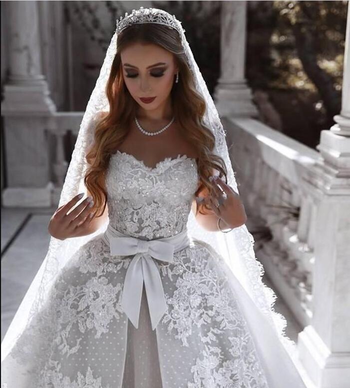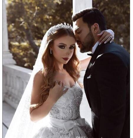 Elegant Ball Gown Wedding Dresses Sweetheart Appliques Organza Tulle Saudi Arabic Wedding Gowns Bridal Dresses Zipper Up