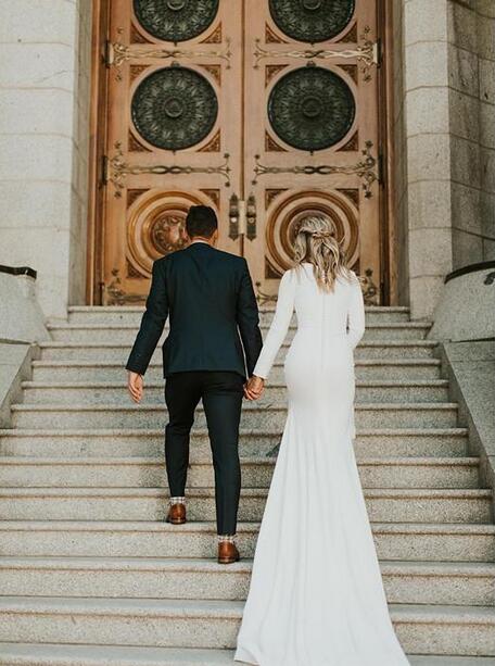 New Crepe Mermaid Modest Wedding Dresses With Long Sleeves Boat Neck Simple Elegant Women LDS Modest Bridal Gowns Custom Made