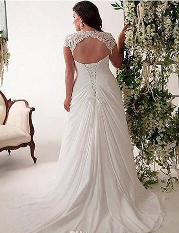 Elegant Applique Lace Wedding Dress back lace up V Neck Plus Size Beach Bridal Gowns