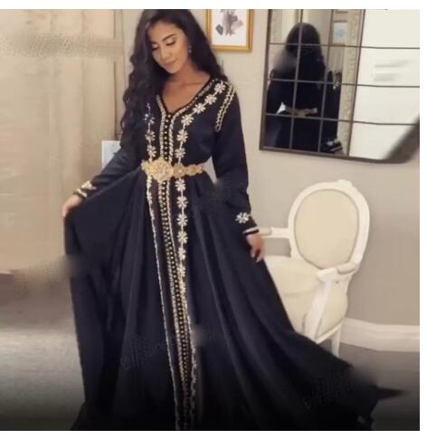 Moroccan Kaftan Evening Dresses Appliques Long Evening Dress Muslim Full Sleeve Arabic Party Dress