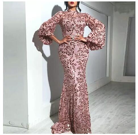 sequined Sexy Mermaid Prom Dresses 2021 Sparkly Crystal Beaded High Neck Long Sleeve Evening Gowns Women Arabic Special Occasion Dress Formal Wear