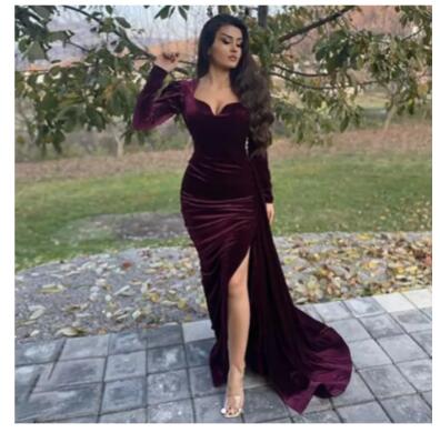 Evening Dress Sweeteart Long Sleeve Sexy Mermaid Prom Gown Plus Size Velvet Mother of the Bride Party Dress