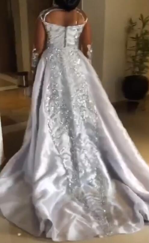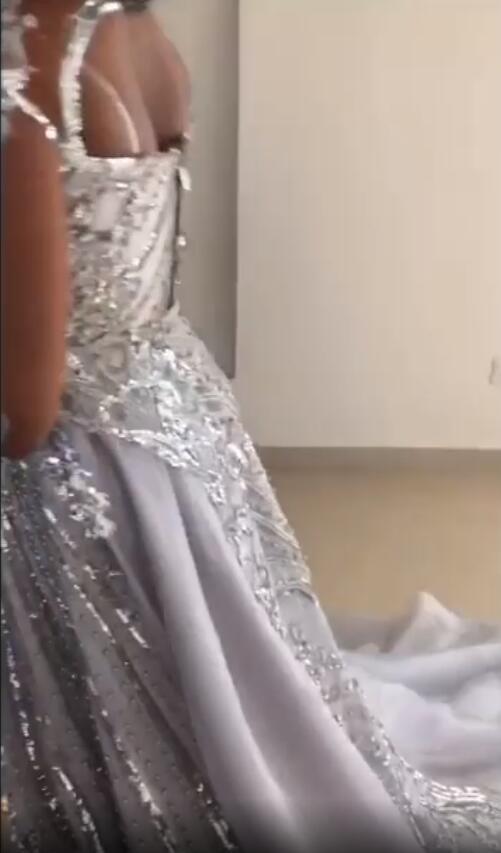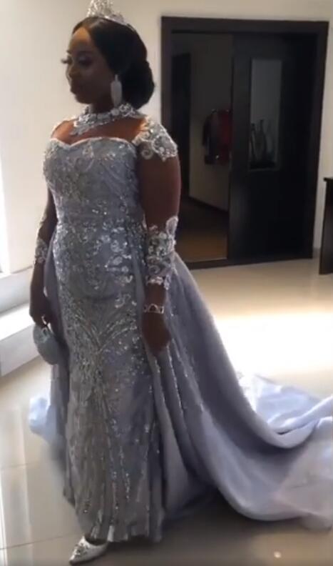 Silver Lace Beaded Wedding Dresses Sheer Neck Wedding Dresses Mermaid Bridal Gowns
