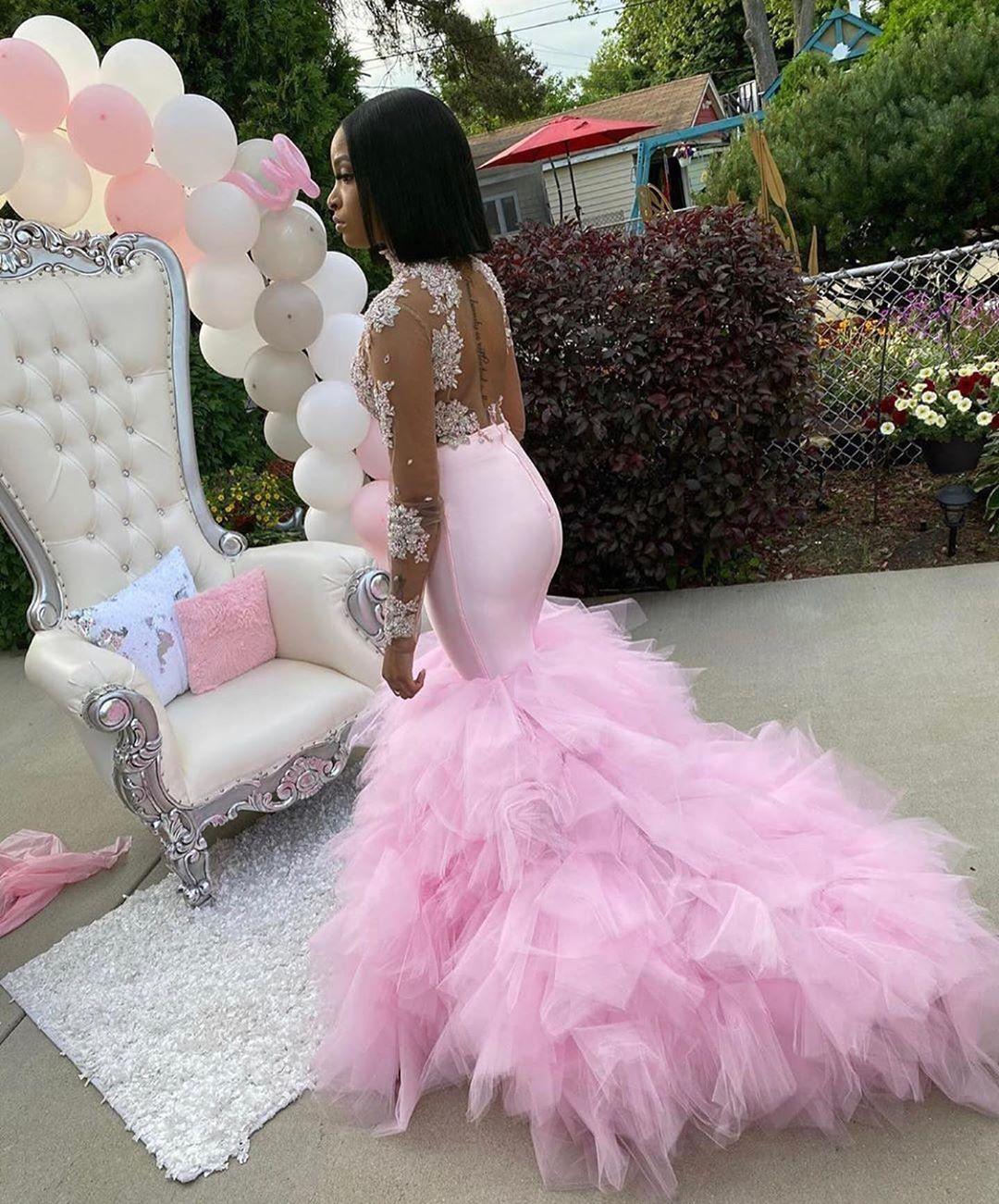 Pink Lace Beaded Evening Dresses Mermaid Sexy Prom Dresses Backless Formal Party Second Reception Gowns
