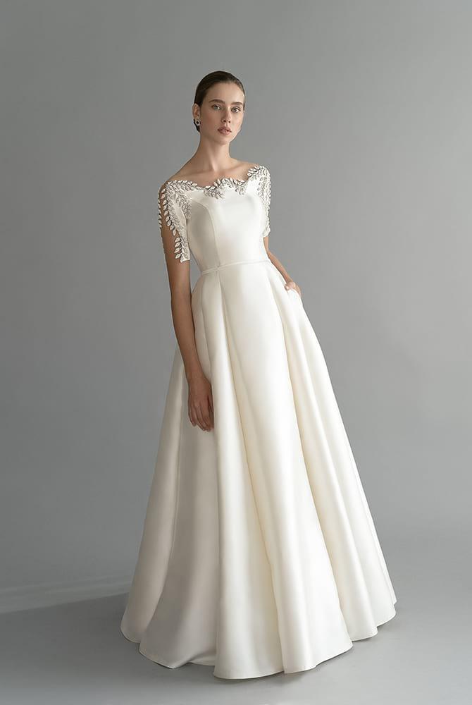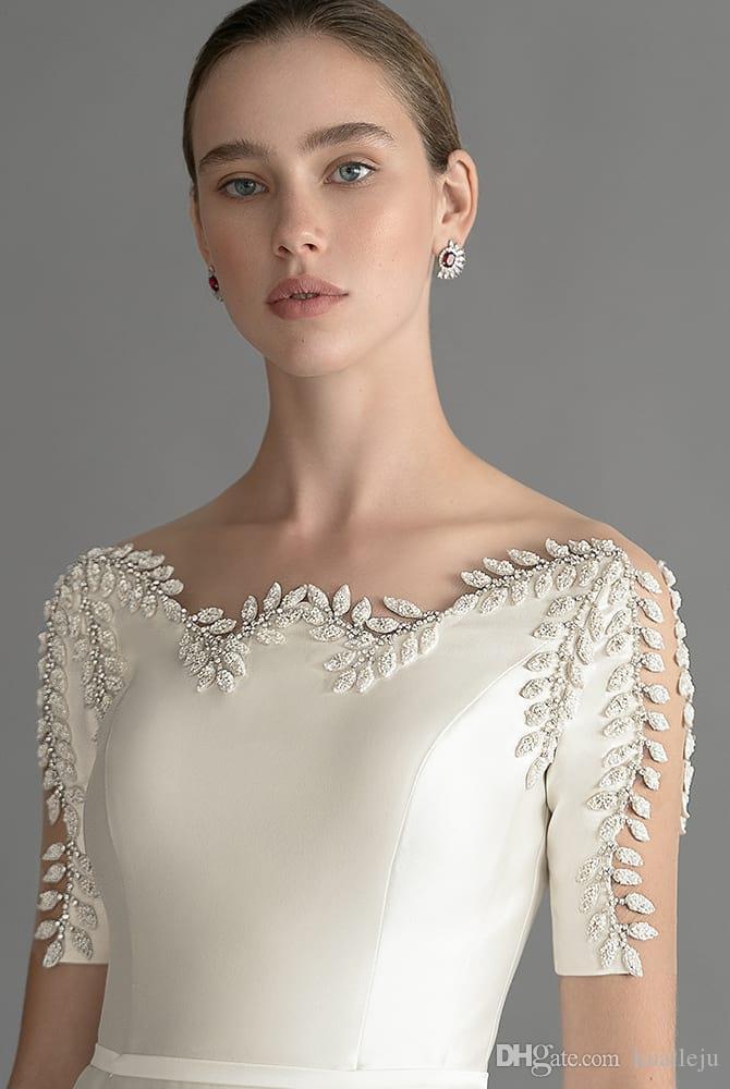 Simple A Line Chana Marelus Wedding Dresses Off Shoulder Short Sleeve Crystal Wedding Gowns Floor Length robe de mariée