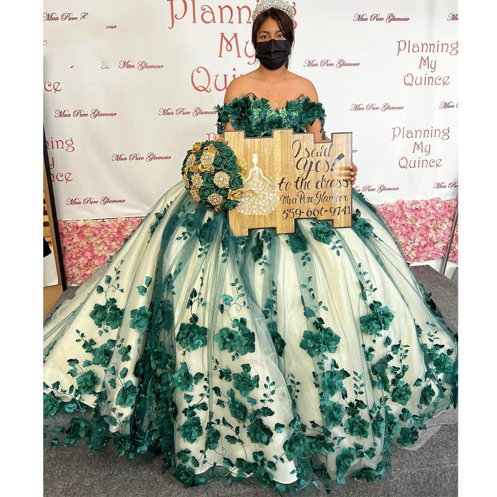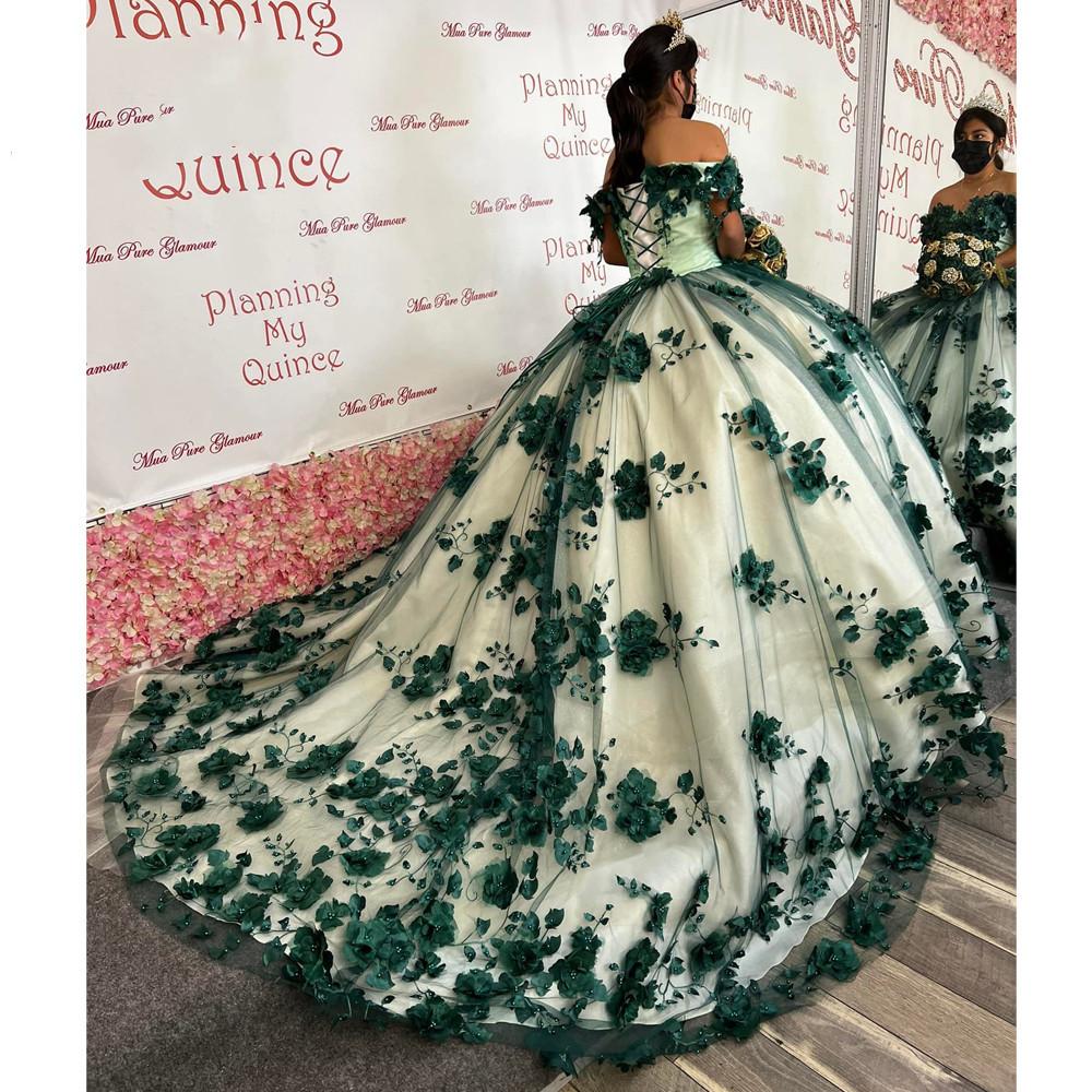 Emerald Green Princess Quinceanera Dresses 3D Flowers Beads Lace-up Applique Sweet 15 16 Prom Dress Party Wear Xv Anos