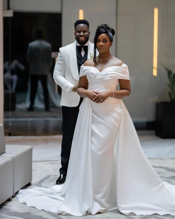 Elegant Sheath Off the Shoulder African Girls Wedding Dress Bridal Gown Wedding Gown