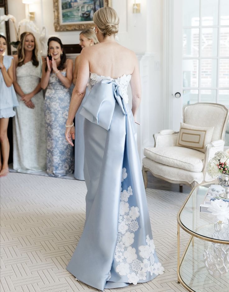 Simple Sheath Blue And White Lace Wedding Dress Bridal Gown Wedding Gown