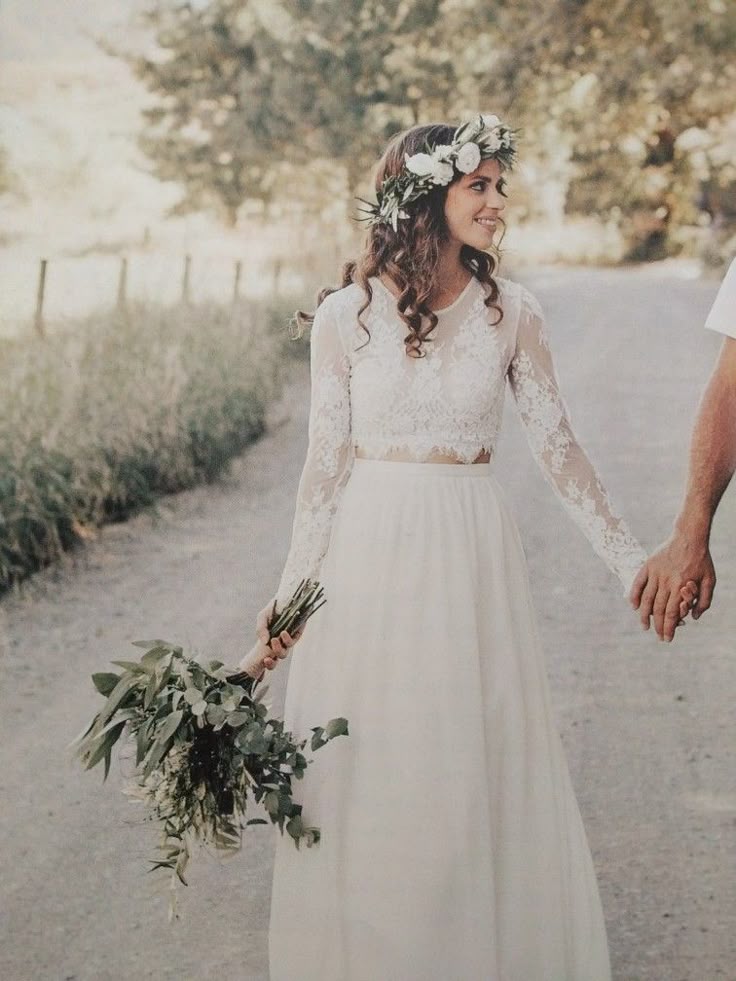 Two Pieces Lace Boho Wedding Dress Bridal Gown Wedding Gown