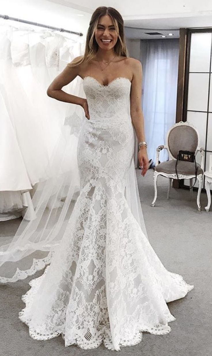 Elegant Mermaid Sweetheart Lace Wedding Dress Bridal Gown Wedding Gown