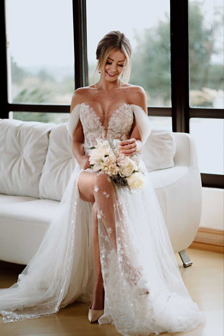 Elegant A Line Lace Appliques Beach Boho Wedding Dress Bridal Gown Wedding Gown