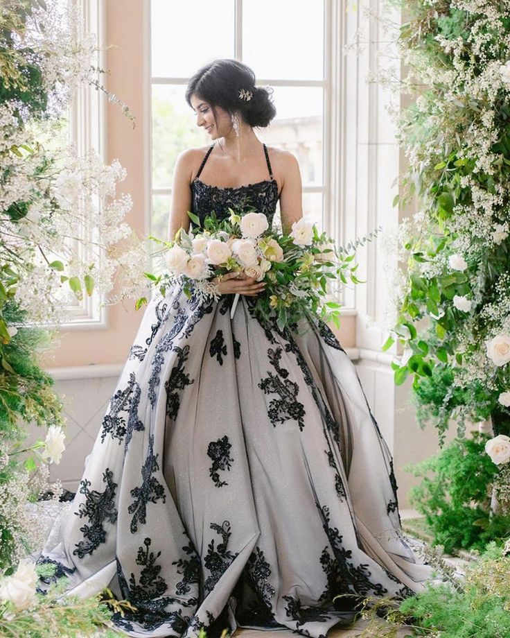 Elegant Ball Gown Tulle Black Lace Appliques Wedding Dress Bridal Gown Wedding Gown