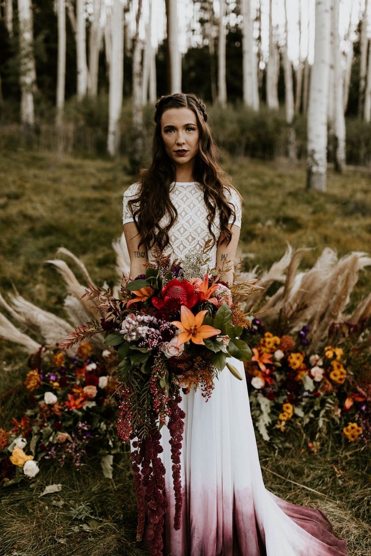 Elegant Dyed Ombre Burgundy Chiffon Wedding Dress Bridal Gown Wedding Gown