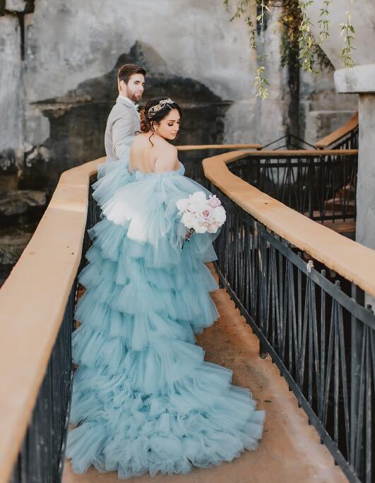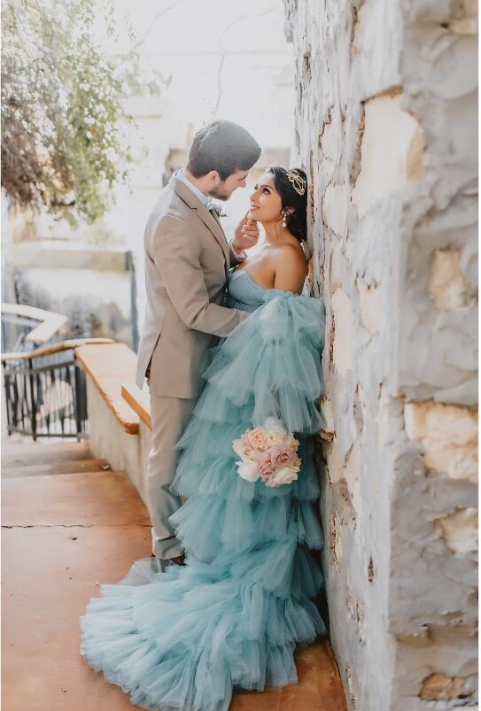 Blue Ball Gown Tiered Light Blue Wedding Dress Bridal Gown Wedding Gown