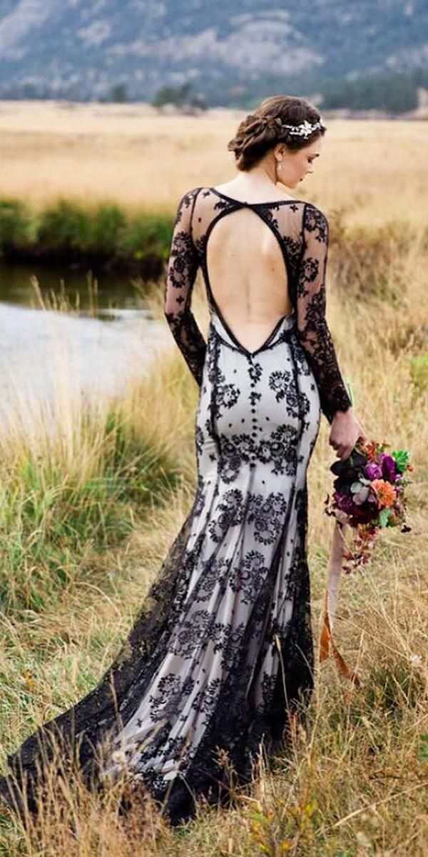 Elegant Black and White Lace Appliques Wedding Dress Bridal Gown Wedding Gown