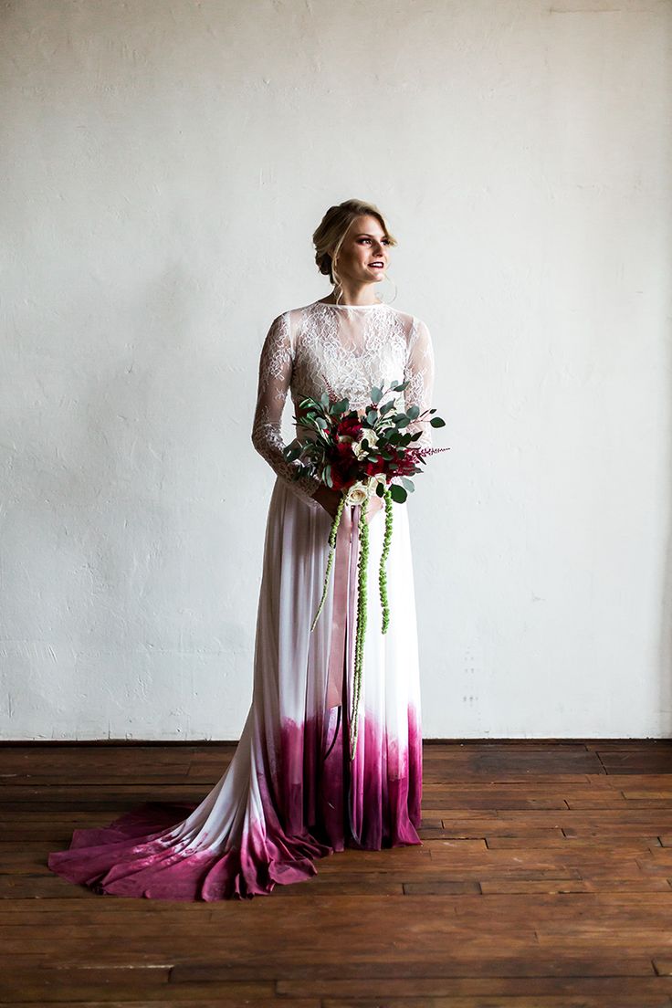 A Line Ombre Red Chiffon Wedding Dress Bridal Gown Wedding Gown
