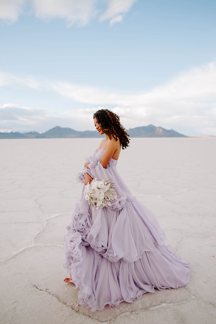 Purple Off Shoulder Tulle Wedding Dress Bridal Gown Wedding Gown