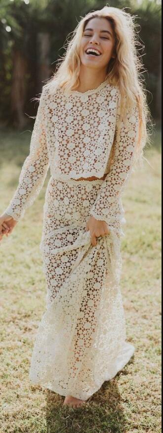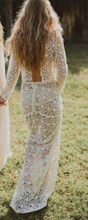 Simple Two Pieces Long Sleeve Lace Beach Boho Wedding Dress Bridal Gown Wedding Gown