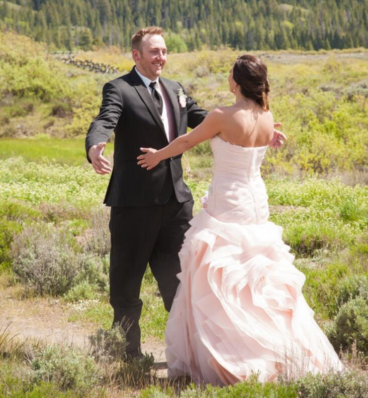 Pink Organza Tiered Wedding Dress Bridal Gown Wedding Gown