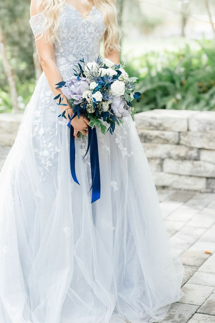 Simple A Line Light Blue Lace Beach Boho Wedding Dress Bridal Gown Wedding Gown