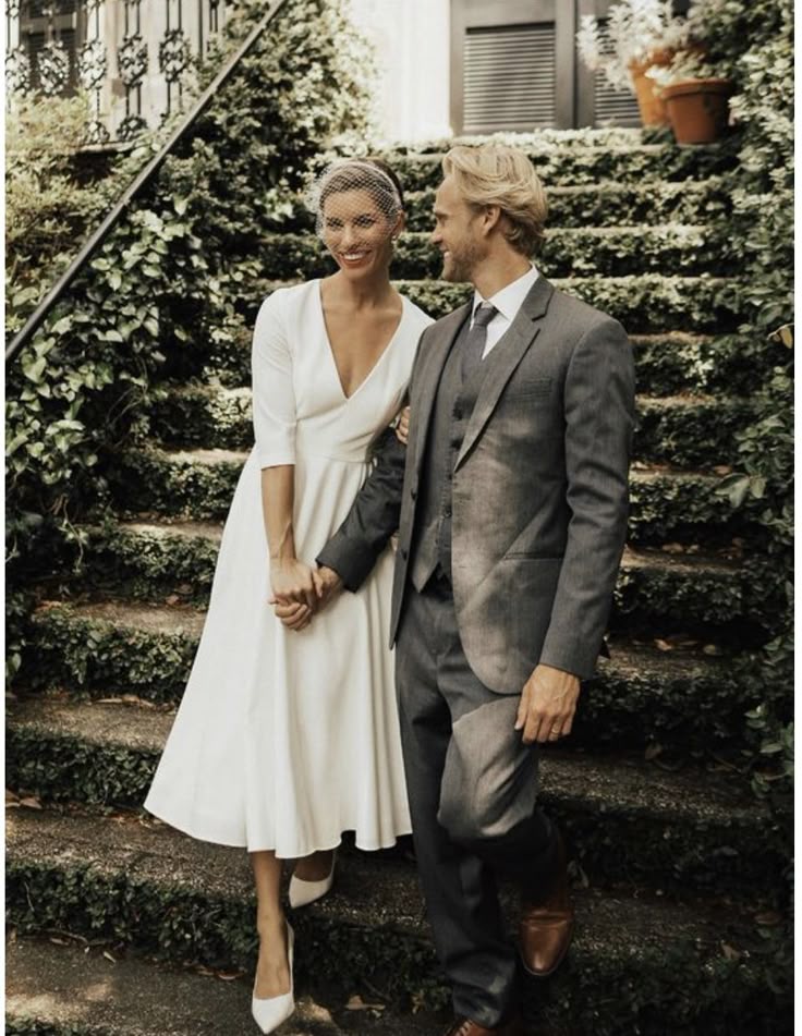 Simple A Line Tea-length Wedding Dress Bridal Gown Wedding Gown