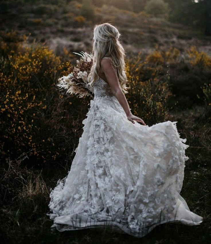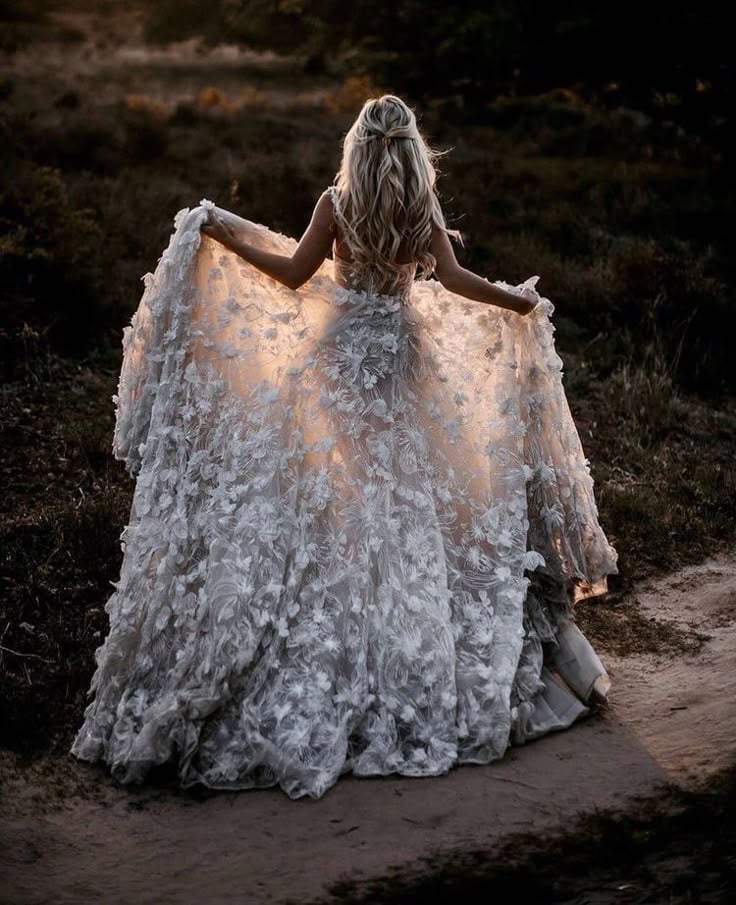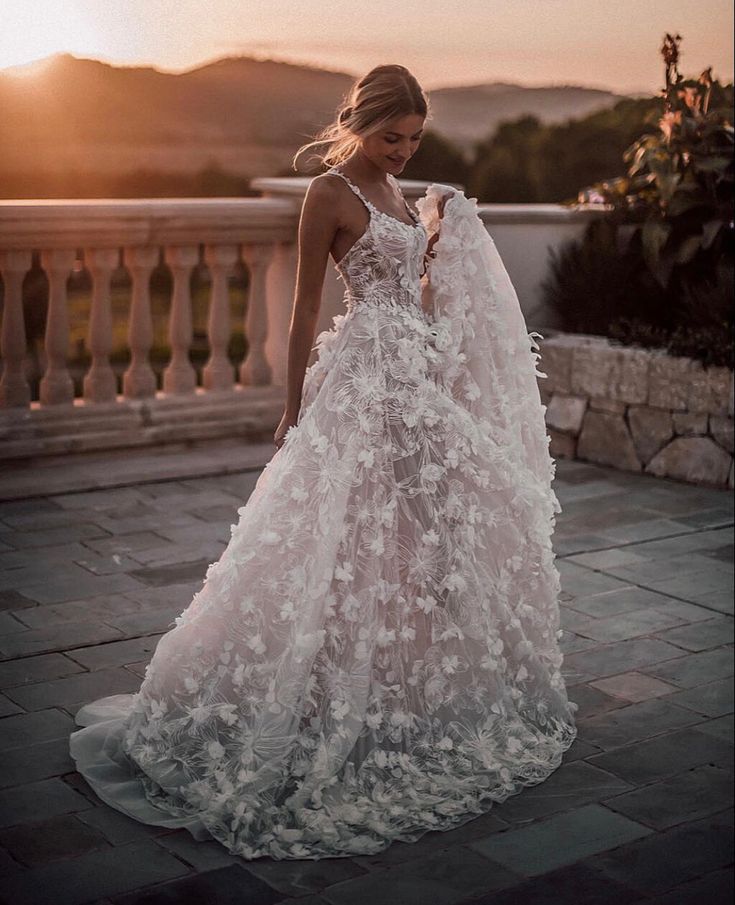 3D Flowers Appliques Tulle Long Wedding Dress Bridal Dress