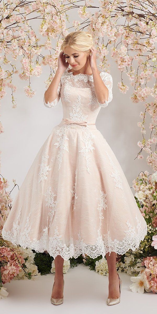 Tea-length Lace Wedding Dress Bridal Gown Wedding Gown
