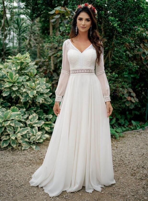 Simple A Line Lace Long Sleeve Wedding Dress Bridal Gown Wedding Gown