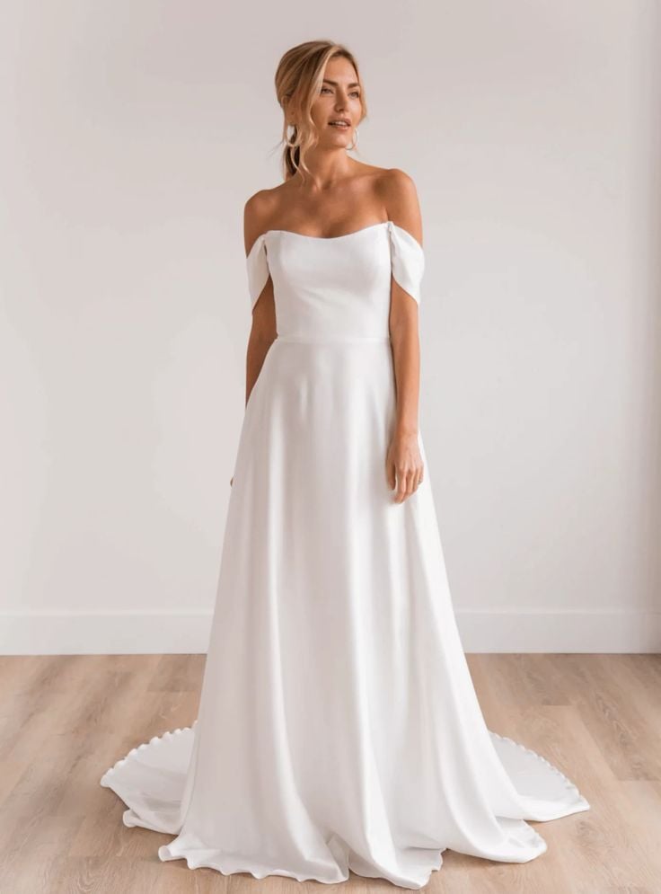 Simple ALine Off the Shoulder Beach Boho Wedding Dress Bridal Gown Wedding Gown