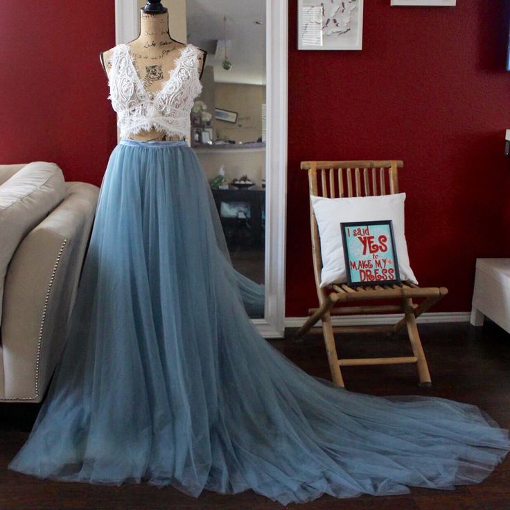 Modest Blue Two Pieces Lace Beach Boho Wedding Dress Bridal Gown Wedding Gown