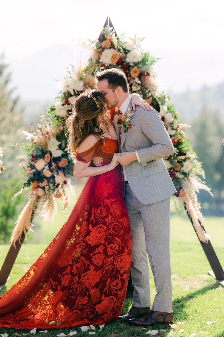 Red Ball Gown Rose Lace Wedding Dress Bridal Gown Wedding Gown
