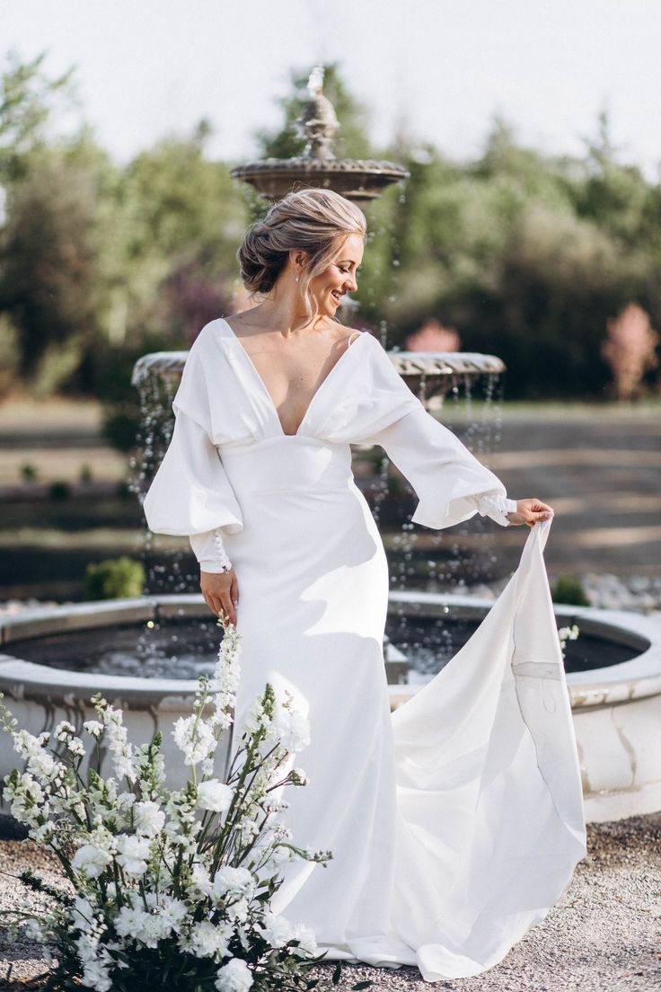 Simple Mermaid Long Sleeve Beach Boho Wedding Dress Bridal Gown Wedding Gown