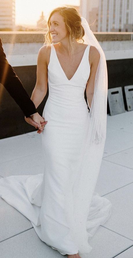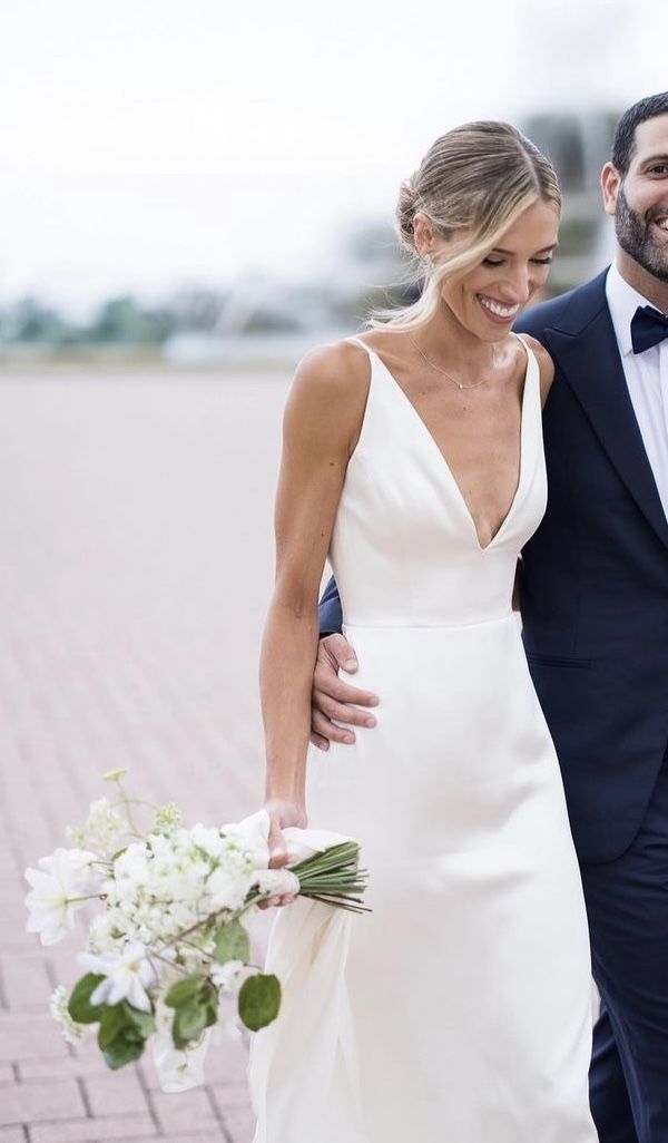 Sheath Deep V-neck Satin Wedding Dress Bridal Gown Wedding Gown