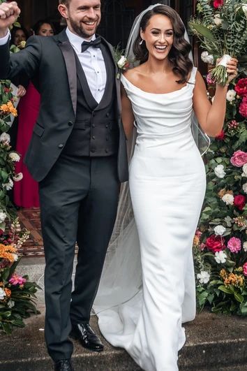 Simple Mermaid Scoop Satin Beach Boho Wedding Dress Bridal Gown Wedding Gown