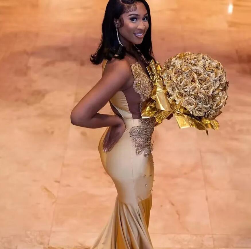 Sexy Gold Sequins Mermaid Prom Dresses Glitter Crystal Plus Size Evening Ocn Birthday Gowns Customised