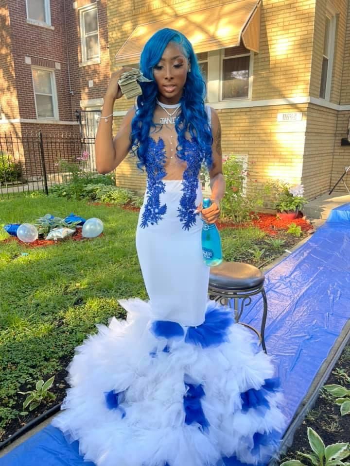 Royal Blue Sheath Prom Dresses for African Women Appliques Birthday Party Dress Evening Formal Dress