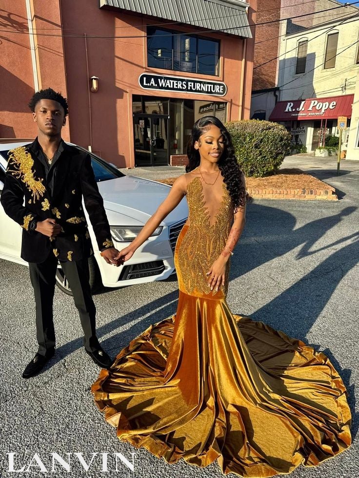 Brown Mermaid Prom Dresses for African Women Beading Crystals Birthday Party Dress Evening Formal Dress