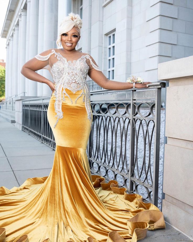 Yellow Mermaid Prom Dresses for African Women Appliques Birthday Party Dress Evening Formal Dress