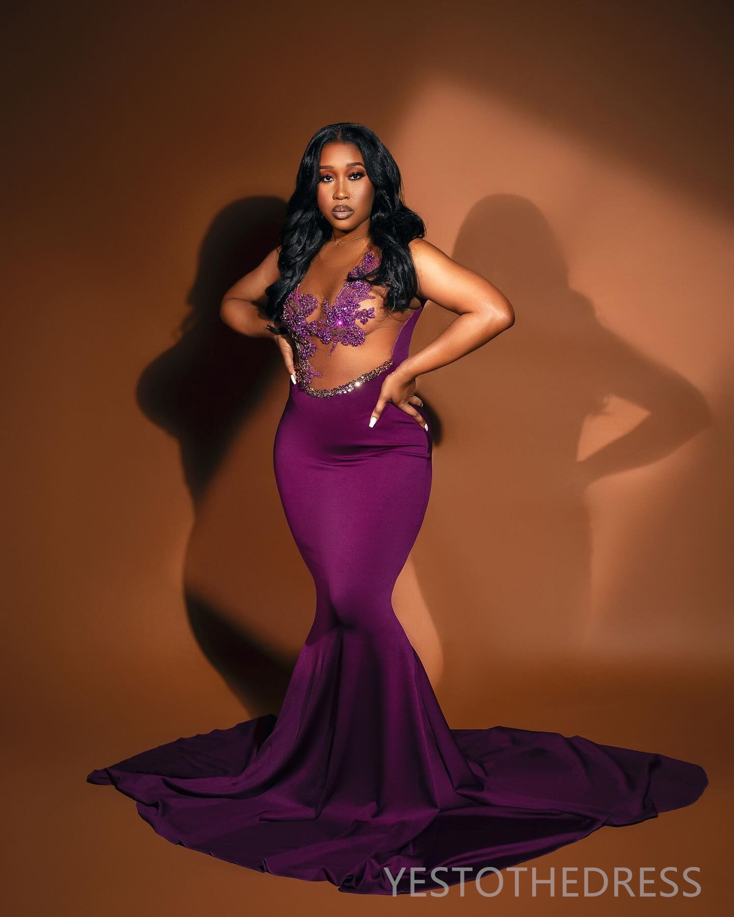Grape Prom Dresses for Special Occasions Illusion Promdress Appliqued Beaded Lace Pearls Decorated Birthday Party Dress Second Reception Gown