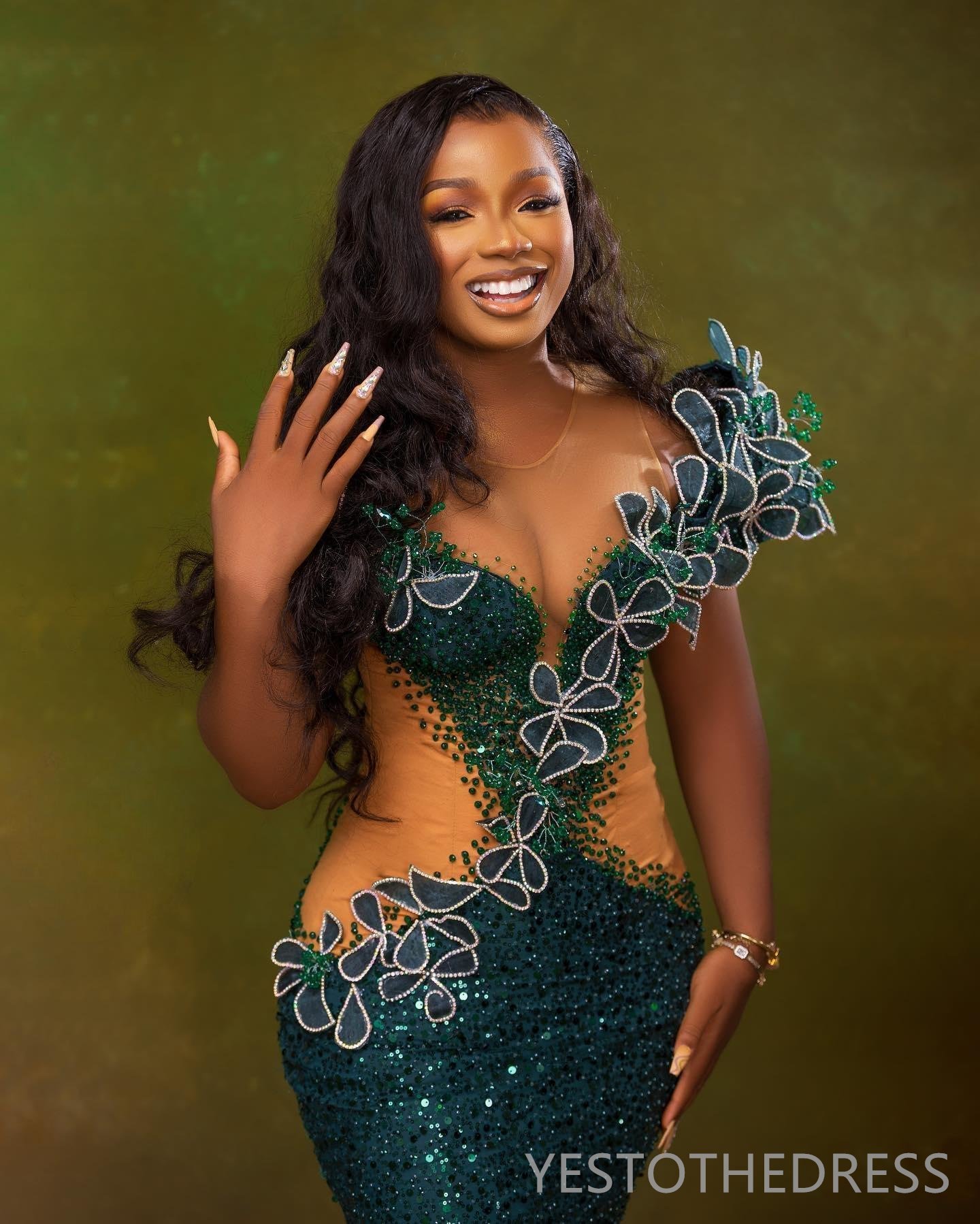 Hunter Green Prom Dresses for Special Occasions Evening Dresses Elegant Illusion Sheer Neck Beaded Lace Pearls Birthday Dress Engagement
